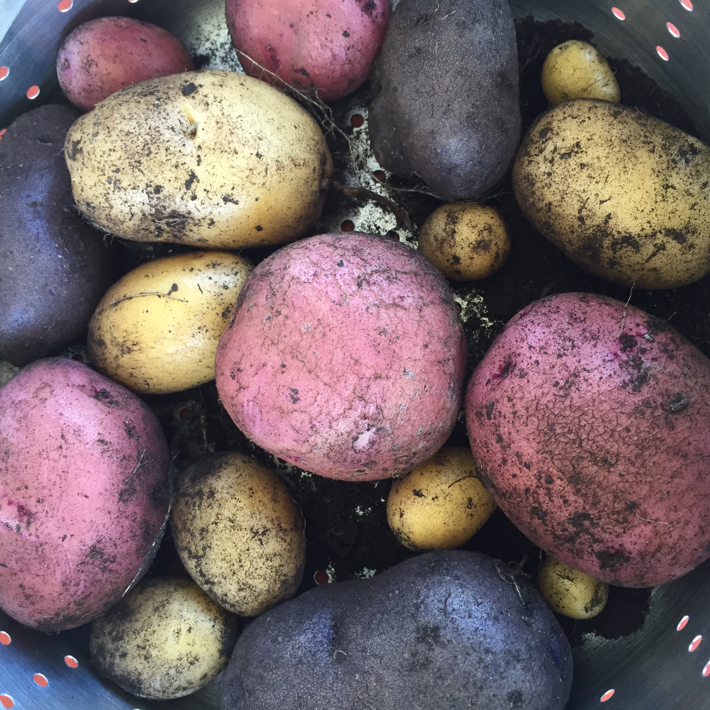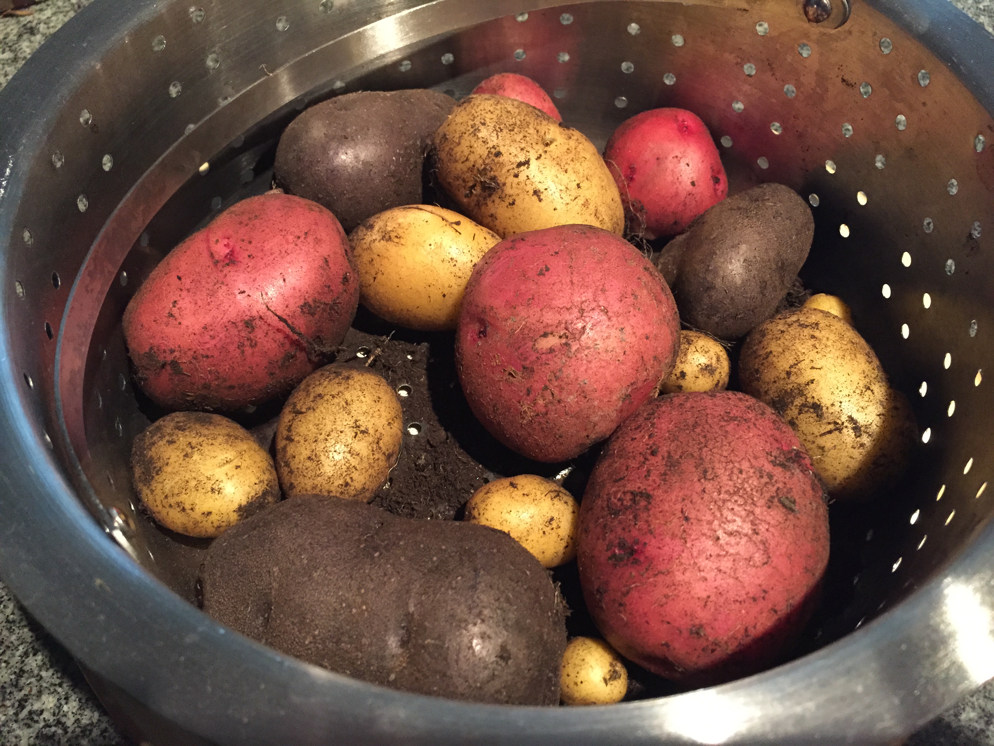 Since we only grew a small amount we planned to eat them fresh, instead of storing them long-term. After the flowers died off and the plant stalks started to wither, the potatoes were ready to harvest. Voila!